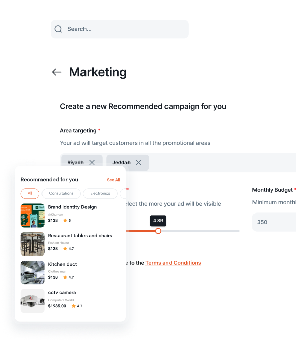 سهل وصول عدد أكبر من العملاء اليك من خلال الأعلانات في المنصة و الحصول على ظهور أعلى و بالتالي طلبات أكثر .
